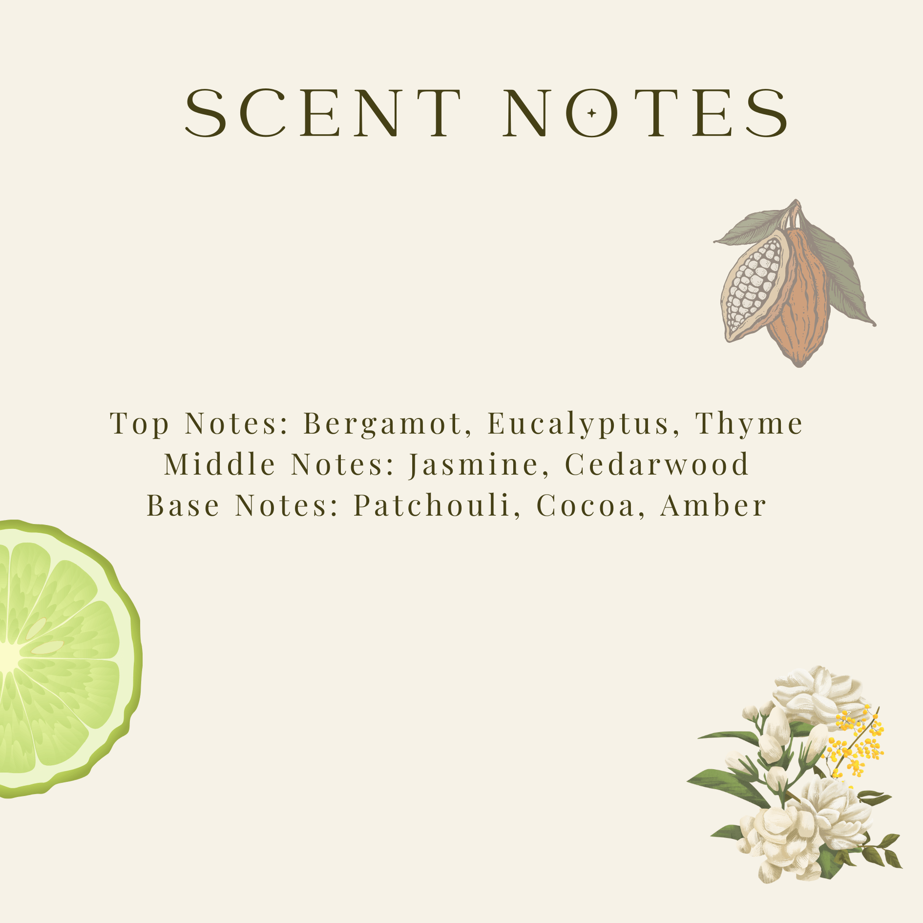 Top Notes: Bergamot, Eucalyptus, Thyme
